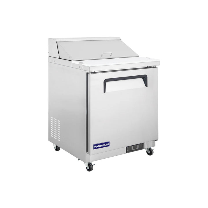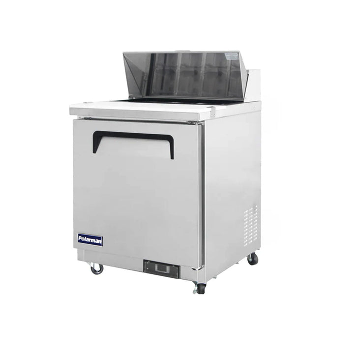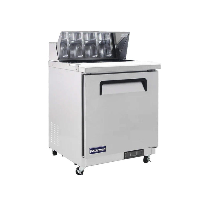 Its top can hold 8 1/6 size pans. The powerful air-cooling refrigeration system underneath can keep ingredients fresh for a long time.
