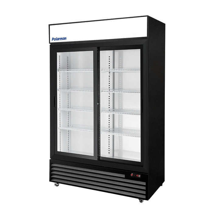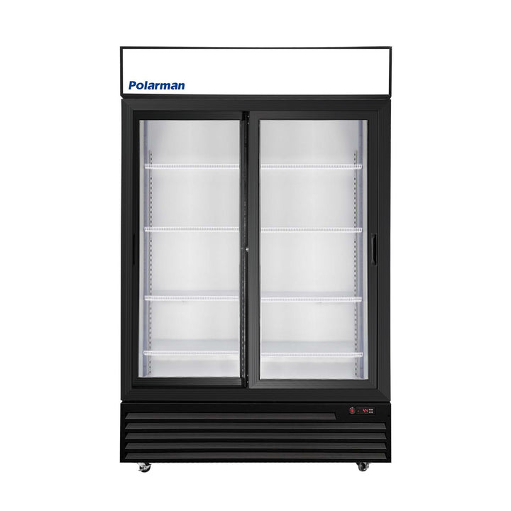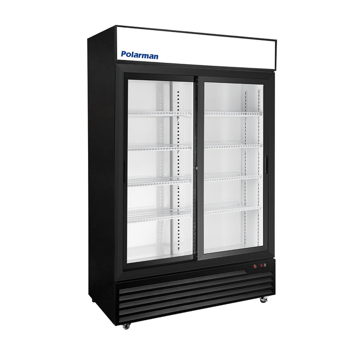 Built to last with a sleek, black coated steel interior and exterior.Smooth-gliding, double-glazed sliding doorsoffer space-saving convenience and superior energy efficiency. Bright vertical lighting and an illuminated canopy make products stand out. Integrated auto-defrost functionality ensures a consistent temperature for lasting freshness.