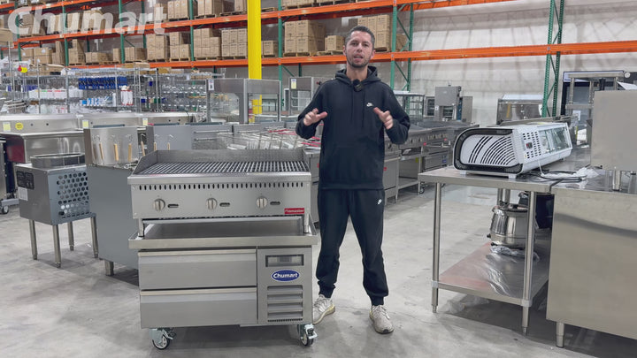 Flamaster's 36 in. countertop radiant charbroiler, heated by three 35,000 BTU U-shaped burners, ensures speedy and uniform broiling. Perfect for effortlessly preparing a range of delights, from juicy burgers to charred vegetables.