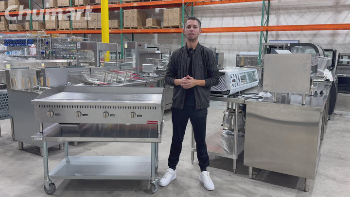 Flamaster’s 48-inch commercial-grade gas griddle, powered by four high-output 30,000 BTU U-shaped burners, delivers rapid and even heat distribution. Ideal for the busy chef, this griddle is designed to effortlessly craft everything from airy pancakes to perfectly seared steaks, ensuring consistent quality and taste in every dish.